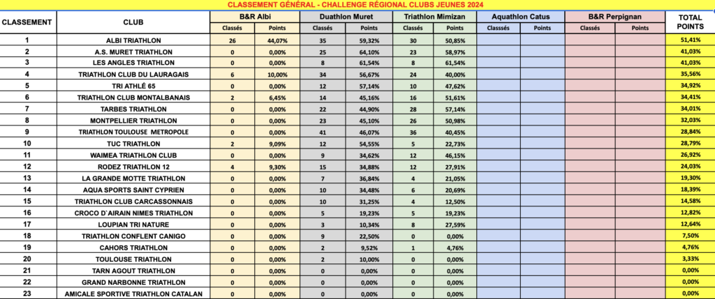 Challenge Régional des Clubs Jeunes | Albi Triathlon en tête après la 3ème épreuve