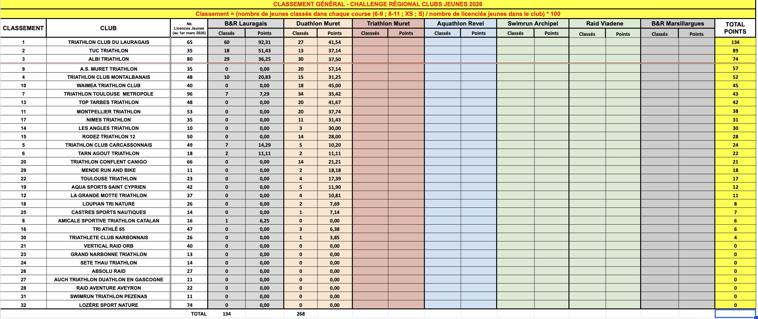 Mise à jour CRCJ | Le Triathlon Club du Lauragais en tête du classement après l’épreuve du duathlon de Muret
